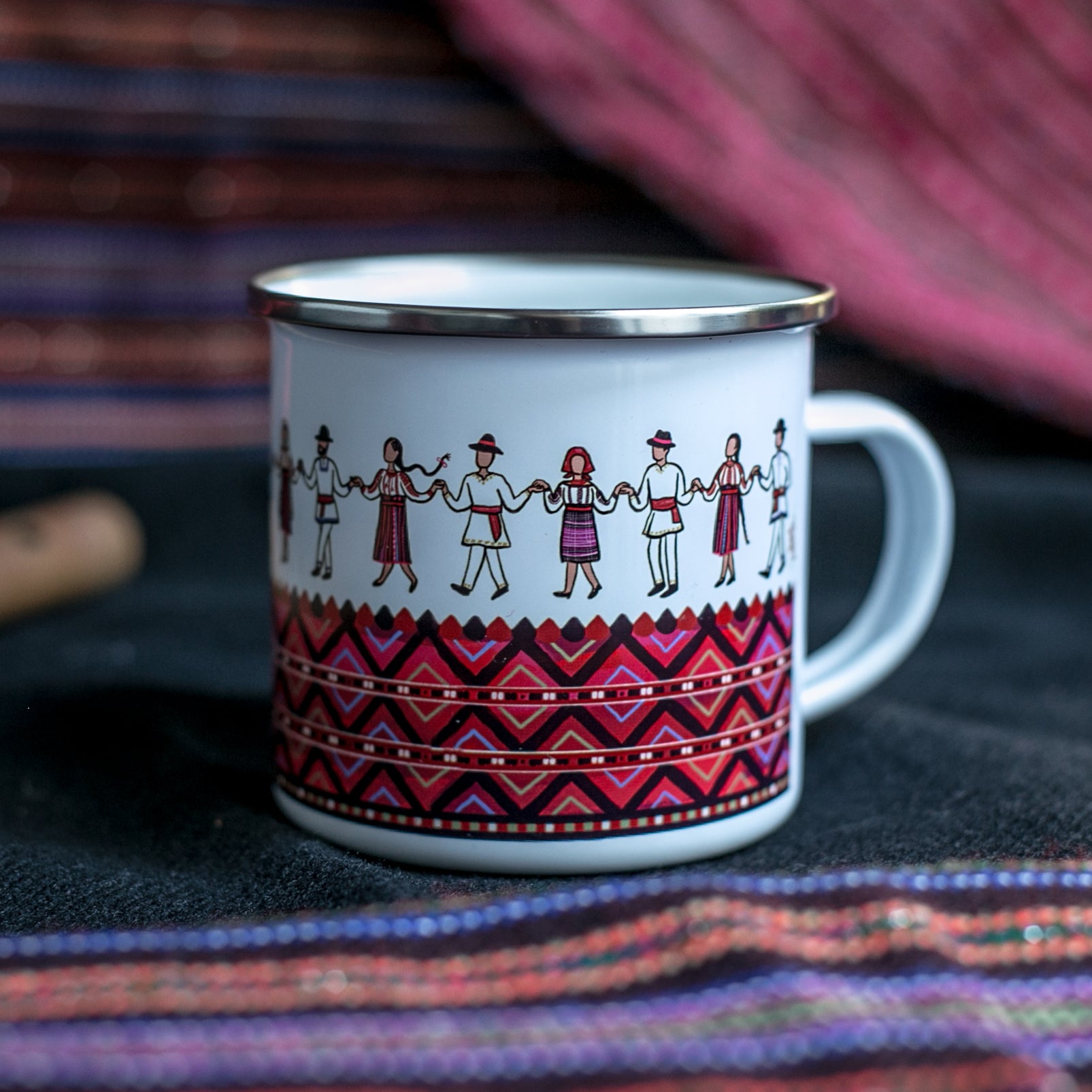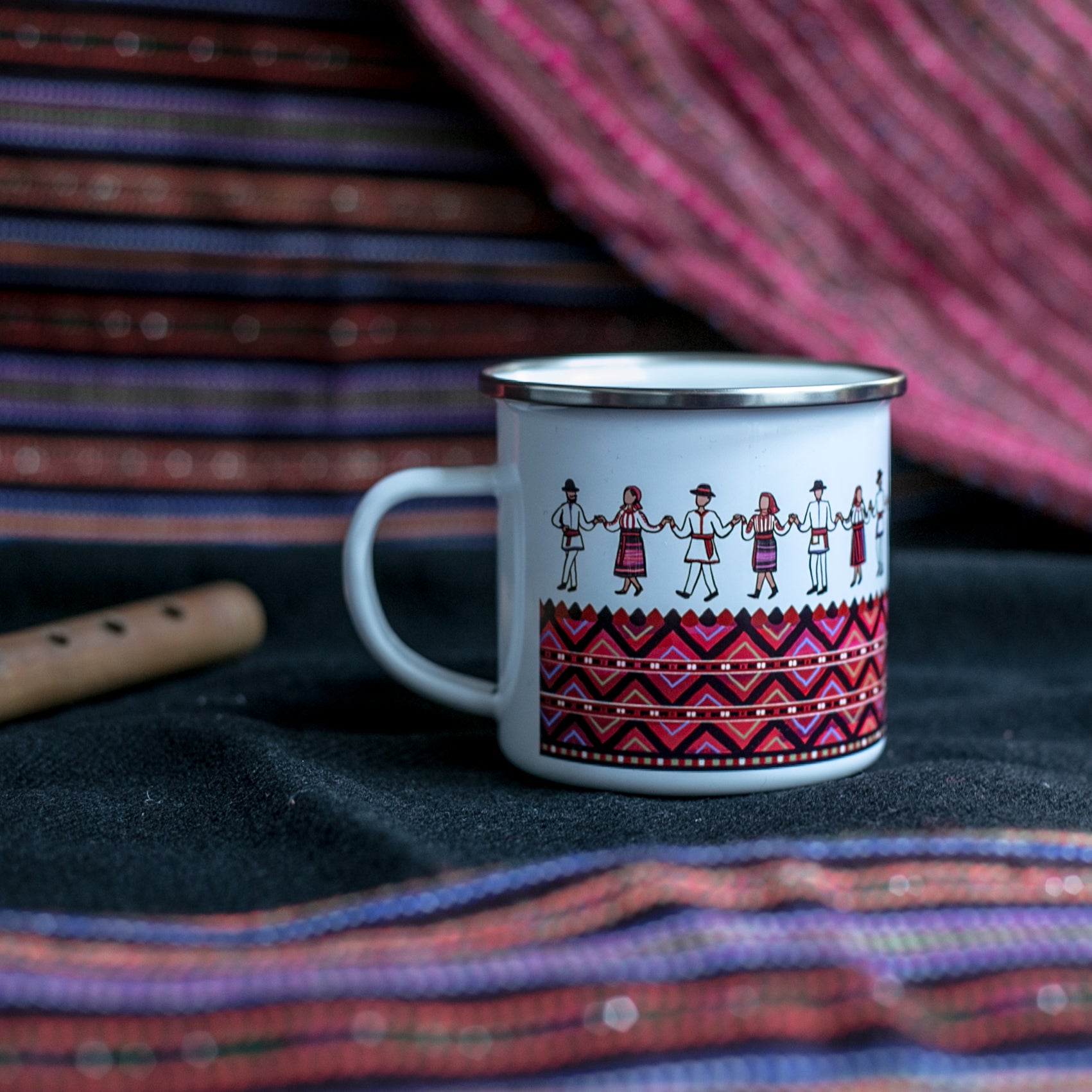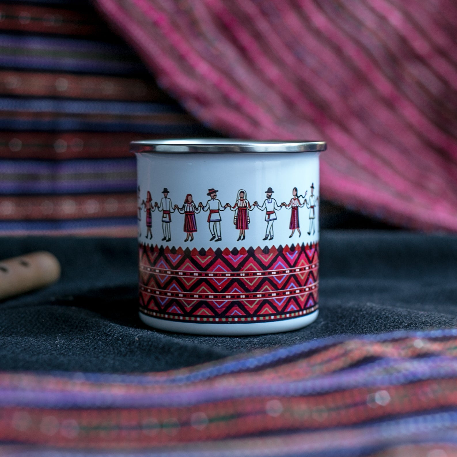 Moldvai csángós zománcozott fém bögre. 350 ml.